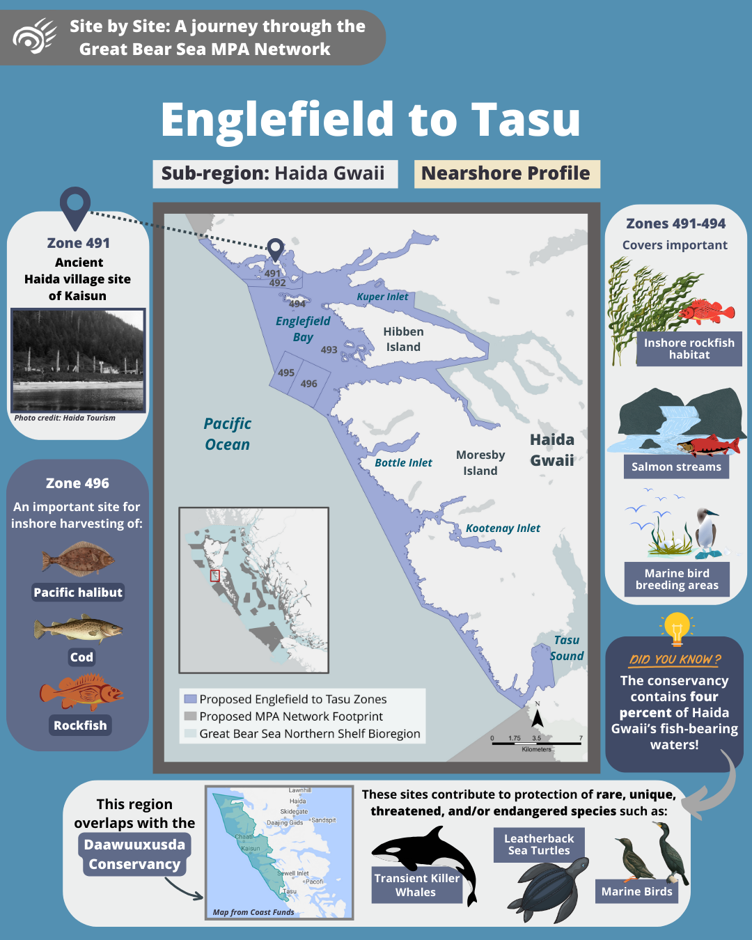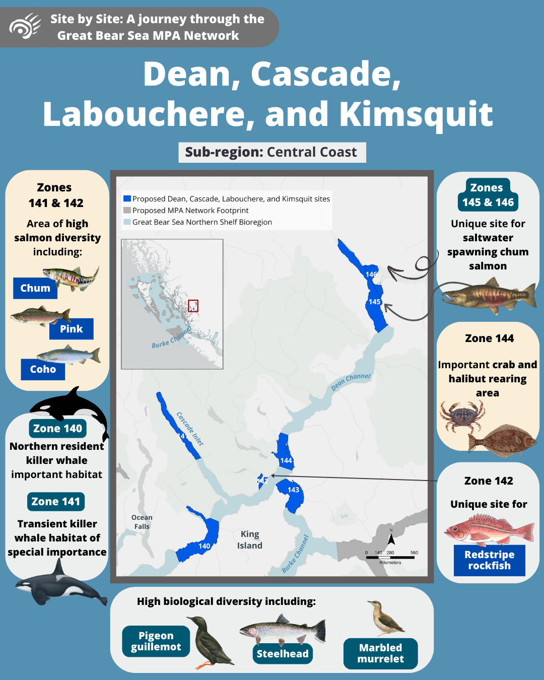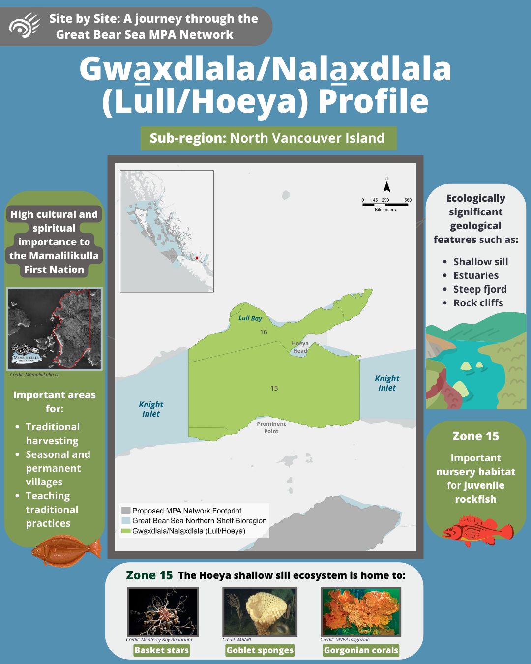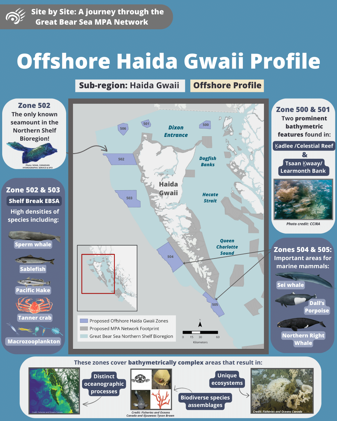 Come along on a tour of the Great Bear Sea Marine Protected Area (MPA) Network and let us introduce you to the marine life and unique stories that each site holds!