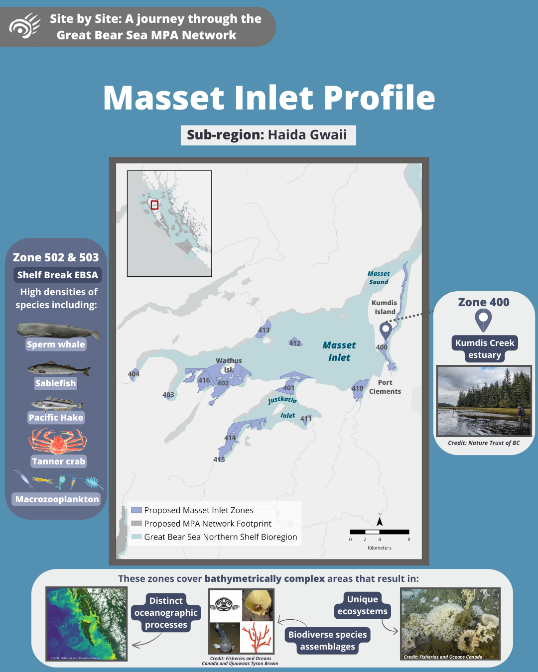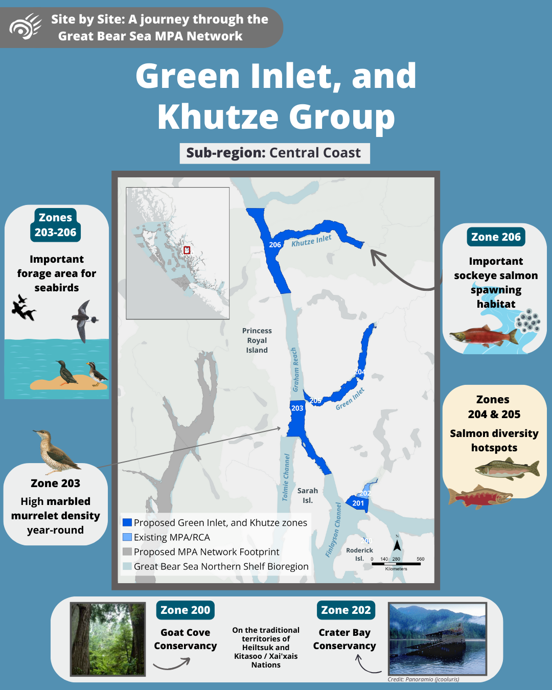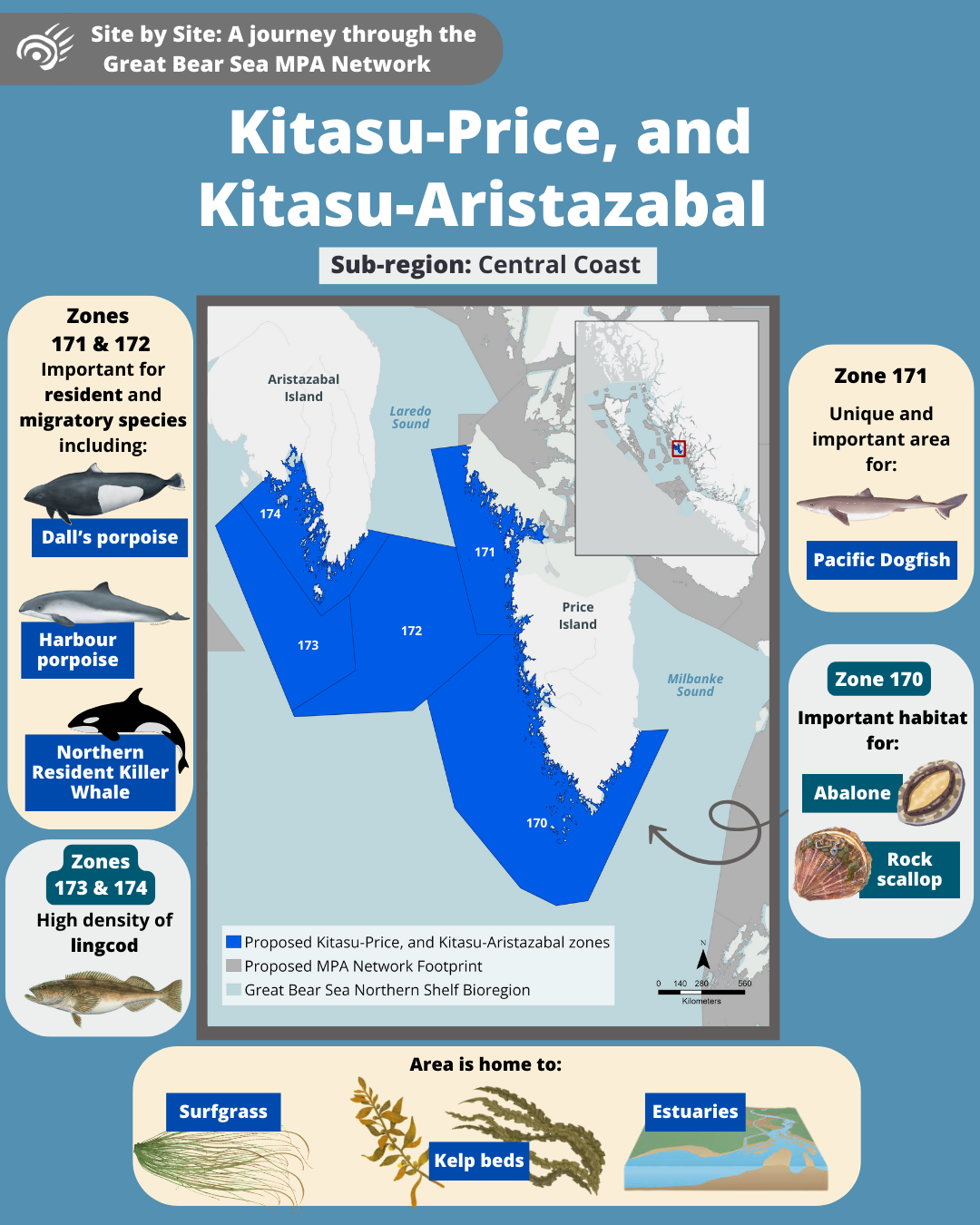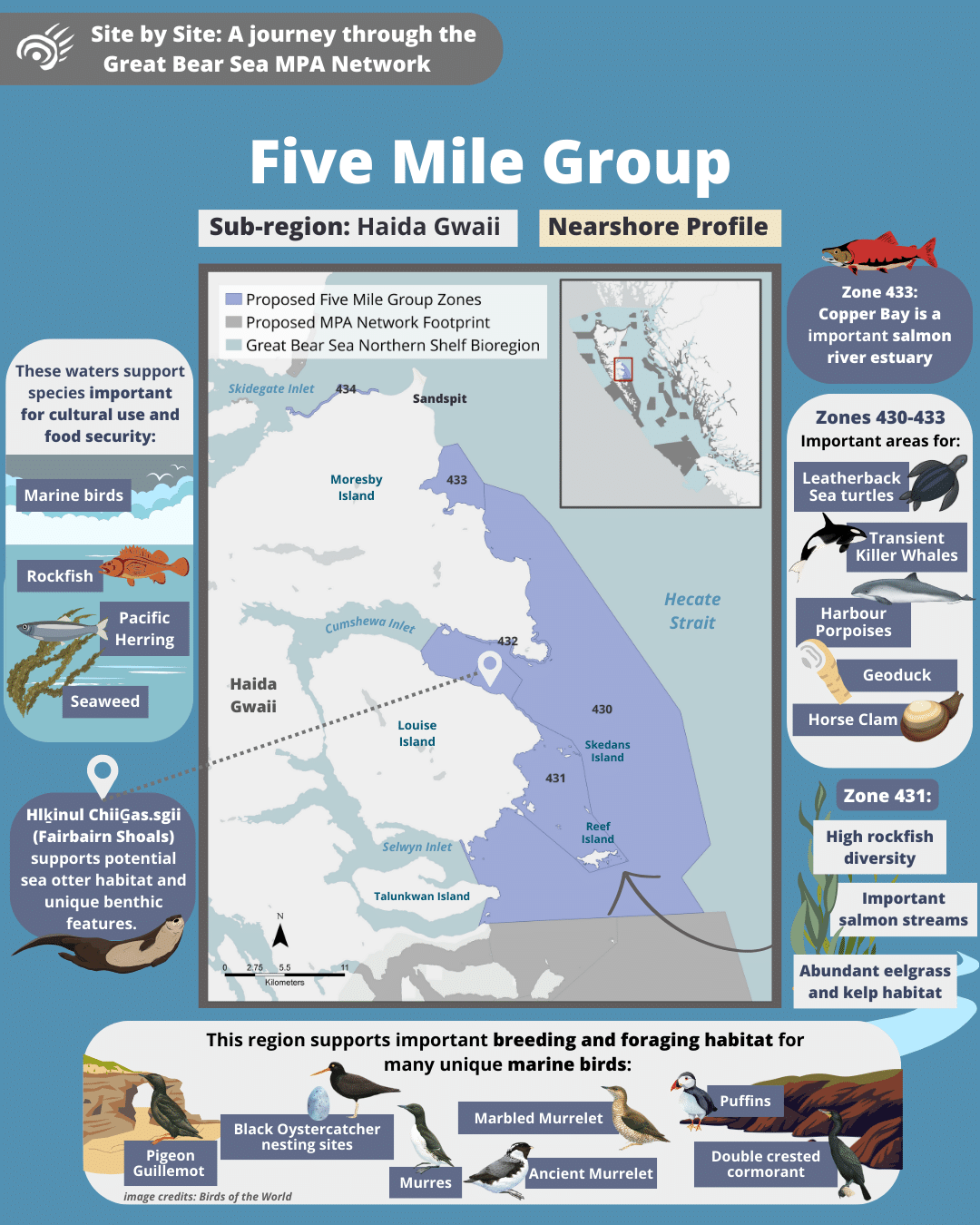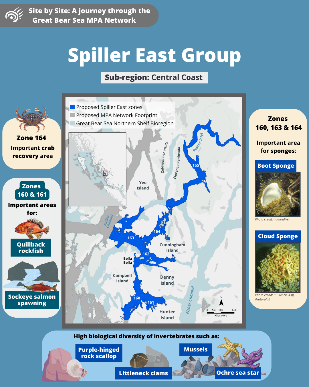 Come along on a tour of the Great Bear Sea Marine Protected Area (MPA) Network and let us introduce you to the marine life and unique stories that each site holds!
